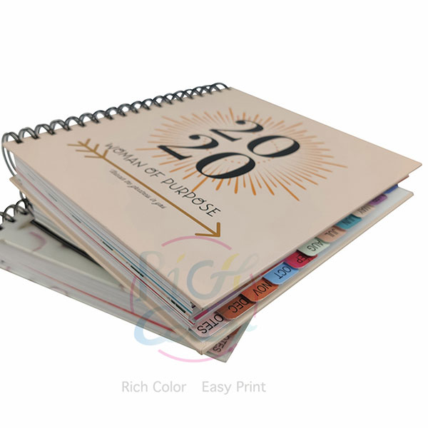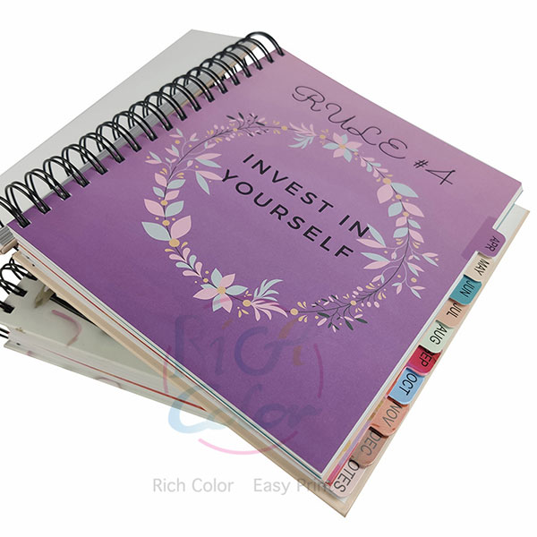 8*10 инча 16 страници като един подпис Седмичен печат на спирала Wire-o с разделителни раздели |